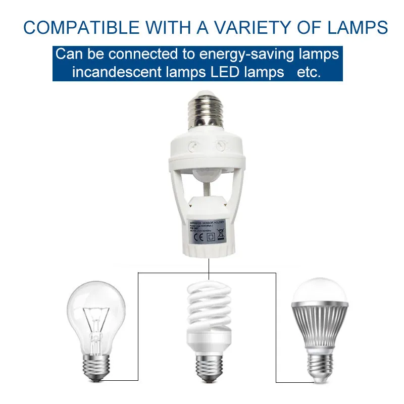 This human infrared sensor lamp holder uses an E27 bulb interface and it can identify day and night automatically. It is made of Copper Coil material that is durable and ensures long-term service. The holder will start if there are people, but it will stop if there are no people. Also, the working distance of this holder is 8m, and the delay time is 5-1 minutes. Moreover, it can be used in the CD of the house, in front of the gate of the house.
